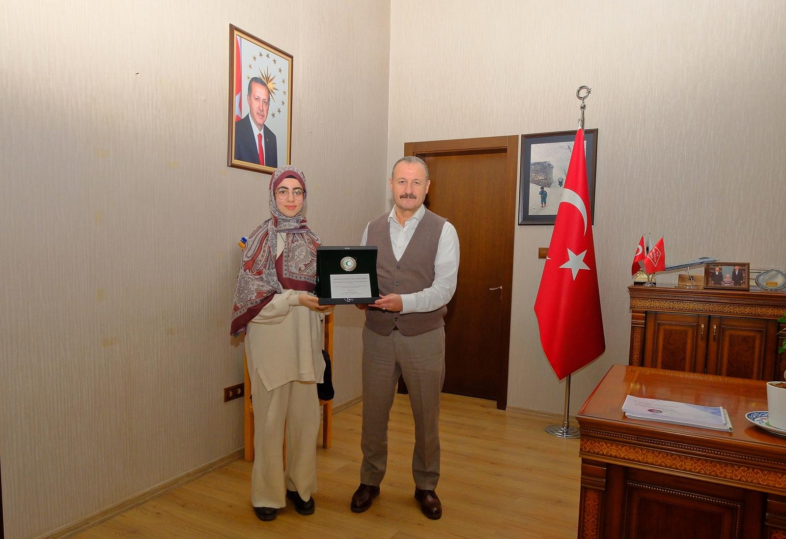 Elde edilen bu önemli başarının ardından Kırıkkale Üniversitesi Rektörümüz, Prof.Dr.Ersan Aslan Genç Yeşilay Topluluğu akademik danışmanı Dr.Öğretim Üyesi Naciye Güven, Genç Yeşilay topluluk başkanı İkbal Çalık ve Kırıkkale Yeşilay Şube Başkanı Yusuf Çalık ve personeli Ahmet Karataş’ı makamında kabul ederek tebrik etti.